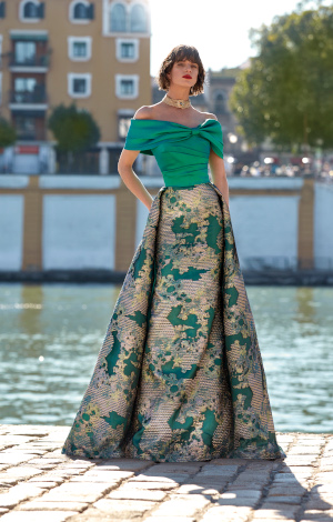 El color del amanecer en verano es el punto de partida de esta colección de fiesta tan especial. Destacan la innovación en los patrones de las sobrefaldas, tan características de la marca, en diferentes volúmenes y largos, confeccionados en tejidos vaporosos de seda, con cuerpos transparentes de pedrería y tejidos de fantasía, que se ajustan en la cintura. Haciendo de cada vestido un diseño único, como los momentos que vivimos al amanecer, al igual que los colores que inundan esta colección, los tonos amarillos combinados con negro, los rosas en sus diferentes paletas, verdes y azules, tan característicos de las colecciones de Valerio Luna. Aportan la exclusividad y la elegancia que necesita cada mujer para que se sienta especial.